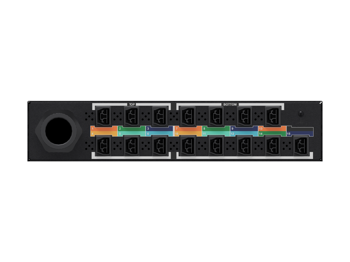 rPDU, Monitored Unit Level, 100A, 277/480V WYE, 66.4kW, Horizontal, (15) Anderson 2005N4 Keyed SAF-D Grid Connectors, 10 ft power cord with 3P+N+E (IP67), Black Powder Coat.