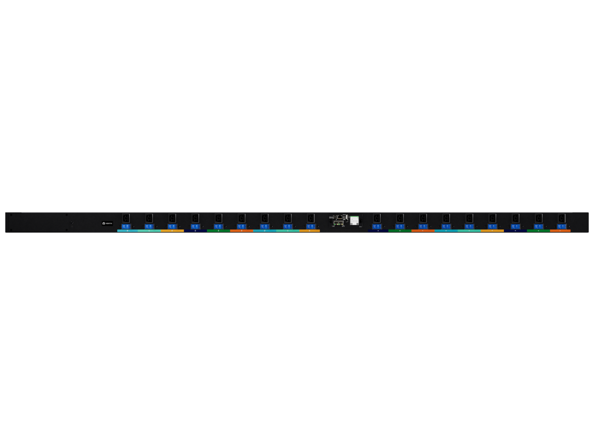 rPDU, Monitored Unit Level EC, 16A OR 20A, 120V OR 208V OR 230V, 1.9kW or 3.3kW or 3.6kW, Horizontal, (12) Combination C13/C19, C20 Inlet, Black Powder Coat.