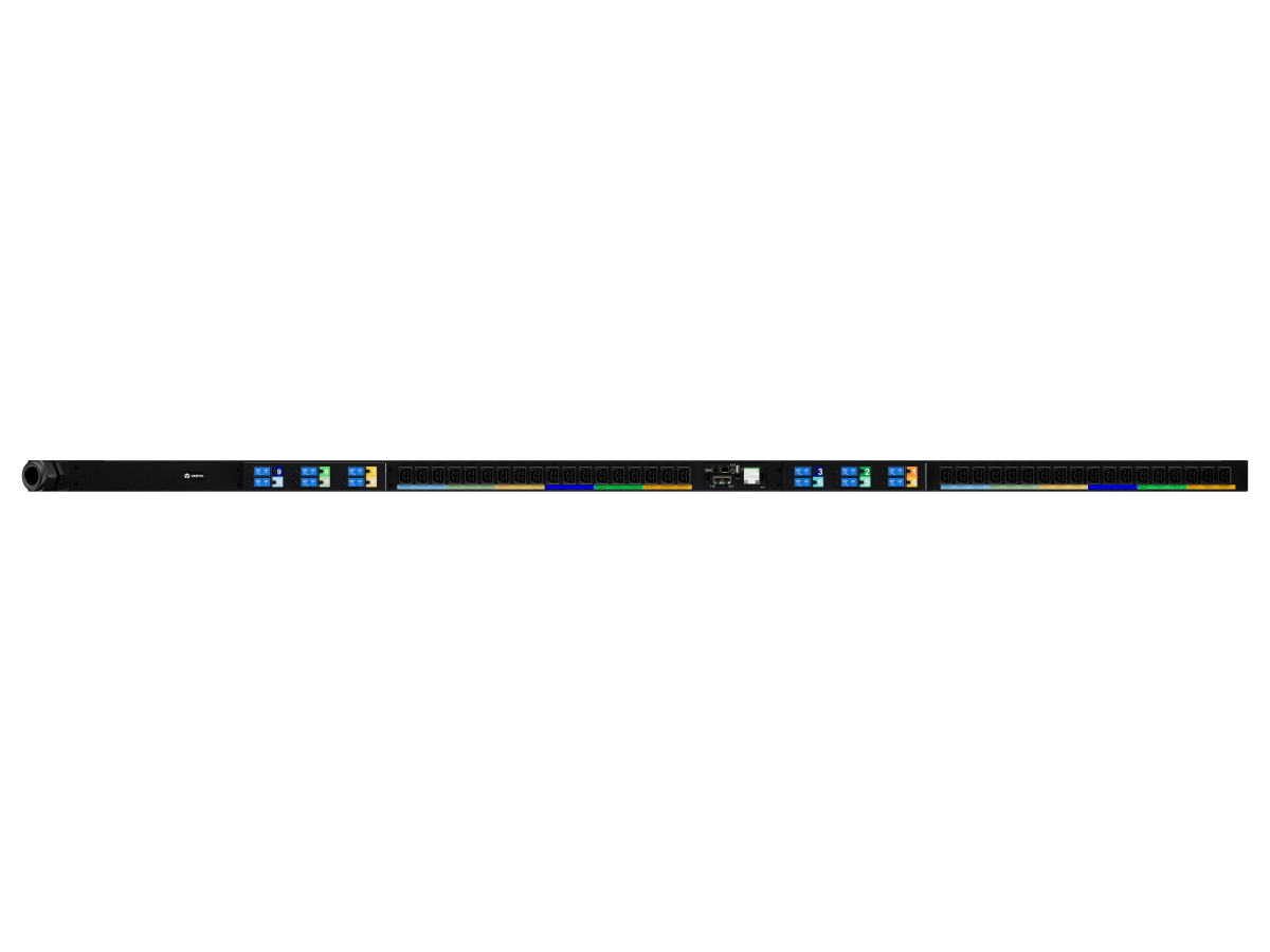 rPDU, Monitored Unit Level EC, 40A, 240/415V WYE, 28.8kW, Vertical, (30) Locking IEC C13, (12) Locking IEC C19, 10ft power cord with 3P+N+E (IP44), Black Powder Coat.