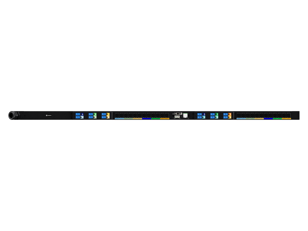 rPDU, Monitored Unit Level EC, 50A, 208V DELTA, 14.4kW, Vertical, (30) Combination C13/C19, 10ft power cord with 3P+E CA, Black Powder Coat.