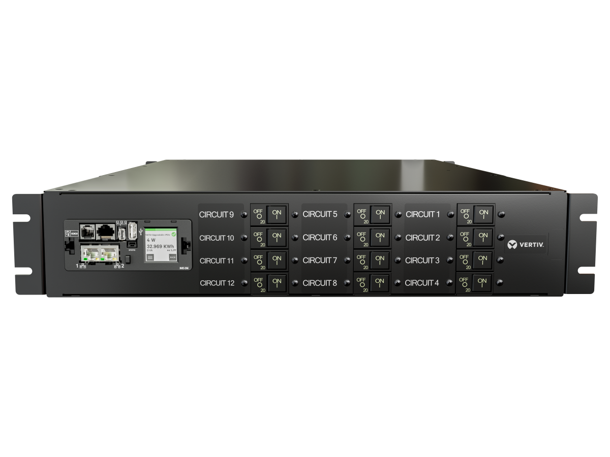 rPDU, Monitored Unit Level EC, 16A OR 20A, 120V OR 208V OR 230V, 1.9kW or 3.3kW or 3.6kW, Horizontal, (12) Combination C13/C19, C20 Inlet, Black Powder Coat.