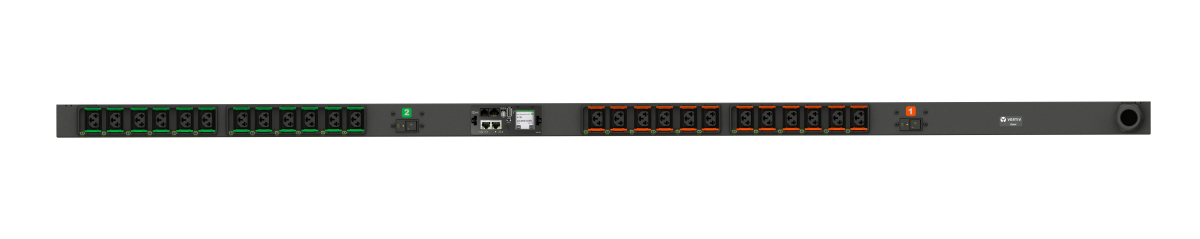 rPDU, Switched Outlet Level Monitoring EC, 30A, 208V Delta, 8.6kW, Vertical, (24) Locking IEC C13, (12) Locking IEC C19, 10ft / 3m power cord with L15-30P, Black Powder Coat.