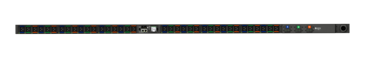 rPDU, Switched Outlet Level Monitoring EC, 30A, 208V Delta, 8.6kW, Vertical, (36) Combination C13/C19, 10ft / 3m power cord with L15-30P, Black Powder Coat.