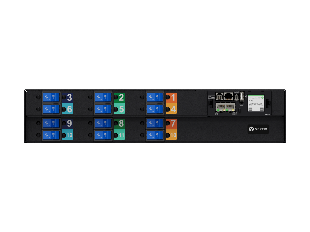 rPDU, Monitored Unit Level, 80A, 277/480V WYE, 66.4kW, Vertical, (18) Anderson 2005N4 Keyed SAF-D Grid Connectors, Hard Wired, Black Powder Coat.
