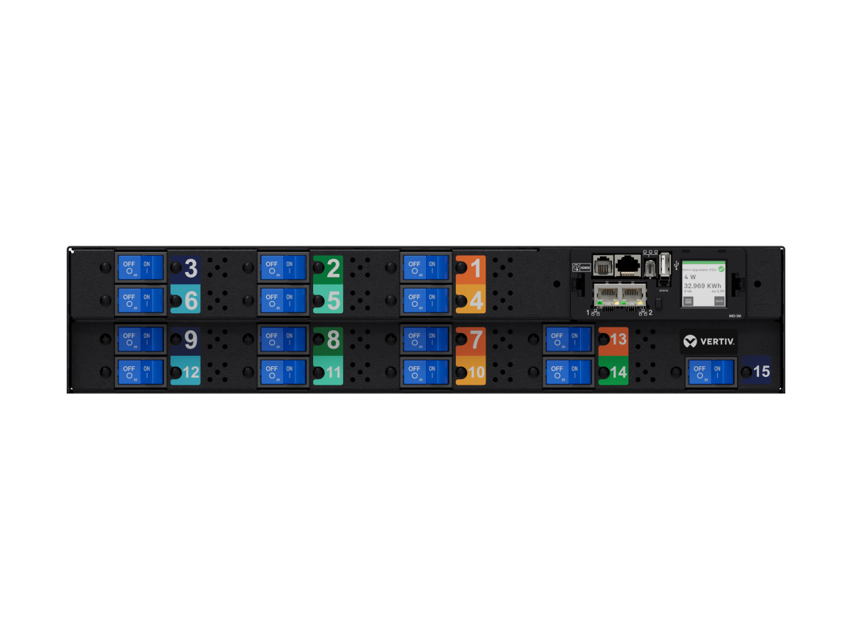 rPDU, Monitored Unit Level, 80A, 277/480V WYE, 66.4kW, Horizontal, (15) Anderson 2005N4 Keyed SAF-D Grid Connectors, Hard Wired, Black Powder Coat.